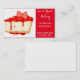 En retro stilvisitkort för gullig vintage som var passande för ett bageri eller en tårta, skapar affär. Denna nyckfulla design visar en jordgubbeostkakaillustration mot en röd bakgrund. Bakgrundsfärgen kan ändras för att passa din smak. Denna visitkort är fullständigt customisable att inkludera ditt egna personligt specificerar.