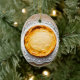 Ostkaka på rustiska träkakor. julgransprydnad keramik