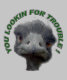 Den roliga ansiktebilden av ett ostrichhuvud med 'ÄR DIG som SÖKER EFTER, BESVÄRAR "cirklat runt om huvudet