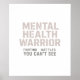 Den här designen fångar på ett vackert sätt den tysta återhämtningsförmågan hos en "psykisk hälsokrigare". Det är en hyllning till den inre styrka som krävs för att bekämpa slag som ofta är osynliga, och som ger ett budskap om solidaritet och hopp. Använda den här utformningen för att starta samtal och minska stigmatiseringen kring psykisk hälsa.