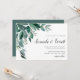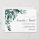 Chicens botaniska bröllopsinbjudan innehåller gröntens eucalyptus-löv som illustreras i vattenfärg. Anpassa till dina bröllop-detaljer som är anpassade till högerna i en blandning av traditionella block och moderna calligraftypsnitt. Kort återgår till solid grönt av skog.