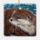 Otter på en Sten-målning Julgransprydnad Keramik