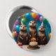 Bild är tre otters med födelsedagshatt, kummel och ballonger som väntar på dig till Party.