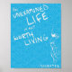 Denna blåa poster innehåller den filosofiska berömd som citeras från Sokrates: "Det okontrollerade livet är inte värt att leva". Anpassa storleka färg och bakgrunden till kostym för din dekoration!