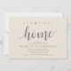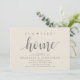 Our first home, new home housewarming party invitation card ("our first home") in cream grey theme, with cute little heart. Planning a housewarming party in celebrating your new home with your family and friends? Invite your guests with this beautiful and perfect Rustic calligraphy themed housewarming party invitation card.