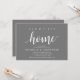 Our first home, new home housewarming party invitation card ("our first home") in dark grey theme, with cute little heart. Planning a housewarming party in celebrating your new home with your family and friends? Invite your guests with this beautiful and perfect Rustic calligraphy themed housewarming party invitation card.