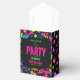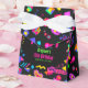 Custom Retro Neon 80’s Birthday Party Favor Box. Personalized neon 80s theme party favor perfect for adult milestone birthday celebrations.