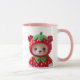 Ours en peluche avec capuche déguisé en fraise. mugg