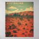 Celebrate the wild beauty of Australia with this retro-style Outback travel poster featuring red earth plains, sparse trees, and endless skies in earthy desert tones.
