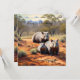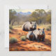 "Wombat Wanderers" fångar charmen och motståndskraften hos tre livmoder som badar i den solbelysta skönheten hos det australiska utslaget. Den akrylmålade målningen visar de jordnära röda tonerna i det ogynnsamma landskapet, som kontrasteras av livmoderns varma, mjuka päls när de tappar eller utforskar sin omgivning. Infödd flora, utspridd sten och antydningar om gyllene ram är skådeplatsen för att fira den unika harmonin mellan dessa koniska marsupier med deras hårda men ändå bedövande miljö.