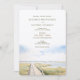Elegant Beachfront - Outer Bank Capture the Esence of your kommande strandbröllop med detta fantastiska Spara datumkort, vackert designat med en serene beachfront vattenfärgsillustration av Outer Banker, North Carolina. Kortet har elegant-typografi med mjuka, ärliga toner av taupe, beige och sandbrun, en stillastående bardpromenadscen som leder till havet. Perfekten för att ange tonen för ett kustnära firande är detta kort både tidlöst och modernt, som blandar sofistikerad kalligrafi med naturliga, lugnande nyanser av himmel blå, pastelliserade gröntar och varm sand.