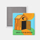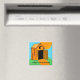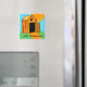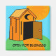 Illustration av en orange outhouse med öppen dörr och måne-halvljus