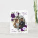 Tack till gästerna i bröllop med de vackra vikbara korten. Framsidan har bild i ett ovalt format ram omgivet av ett antal handmålat ro i plommonskuggor av lila och lavender tillsammans med eukalyptus löv och trädgårdsgrej. Titeln lyder Tack! Inuti finns en anteckning och namnteckning med tryckt anpassningsbar, med gott om utrymme för skriva som du personligen tackar varje gäst för - eller ta bort den utskrivna anteckningen om du vill. Baksidan har en fyrkantig kod som pekar på onlinens fotogalleri där gäster kan visa och/eller bröllop-foton. Fantastiskt till din nya början!
