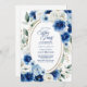 Oval Blue Blommigt Bröllop efter Party Inbjudningar