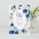 Oval Blue Blommigt Bröllop spara datum Inbjudningar