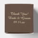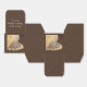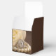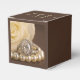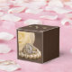 Anpassa favoritboxen söt Oval Diamond Ring och Vit ros med bridens och brudgummens personliga namn och datum för använda på förlovningsfesten, möhippan eller giftermål. Dessa elegant anpassningsbar botaniska partyd har ett foto av blommigten av en blommar av blomman från vit ros, vitpärlhalsband och ovala diamanter från förlovningen ring med brun bakgrund.