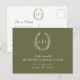Ovalbladig monogram bröllopsavbokning olivgrön meddelande vykort
