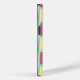Telefonväskan har en geometrisk utformning av en bakgrund av havs-grönt och ljusblå rektanglar med gult- och rosa-ovaler överst.