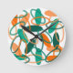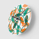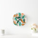 Den här klockan har en modern utformning av ovaler och ovala konturer i orange och teal i mitten av århundradet.