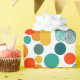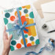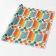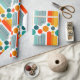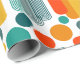 Detta papper har en modern utformning av ovaler och cirklar i orange, guld, teal och turkos på ett fält vitt. Vill du ha samma design med olika färg? Säg det.