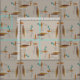 Mitt--Århundrade moderna orbs, ovaler och linjer på ett ljust - brun bakgrund. Klassikermitt--århundrade skärande linjer och stjärnamönster.