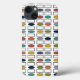 Telefonväskan har en modernt utformning i mitten av århundradet av upprepade rektanglar och ovaler i färg.