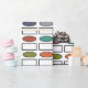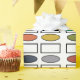Detta papper har en modern utformning i mitten av århundradet av upprepade rektanglar och ovaler i färg.