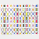 Denna stora filt har en modern utformning i mitten av århundradet av upprepade rektanglar och ovaler i blomsterträdgård färg.