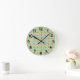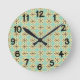 Denna väggklocka har en modern utformning av gräddprodukter i mitten av århundradet och svarta stjärnor på en fält av havets grönt.