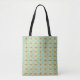 Den här väskan har ett modernt mönster i mitten av århundradet av grädde och svarta stjärnor på en fält av havets grönt.