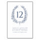 Ovalfrand löv mörk blått på vit bröllop bordsnummer