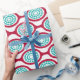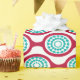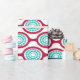 Detta papper har en modern utformning i mitten av århundradet av ovaler av betor som är sammankopplade i kedjor med koncentriska turkocirklar som består av färgad ringar inuti. Samma utformning, olika färg? Säg det.