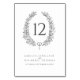 Ovalkrans löv, vitt kol grått bröllop bordsnummer