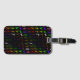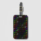 En rolig, färgglad bagagelapp med ett regnbågsdinosaurie-mönster. Med t rex, triceratops, pterodactyl, gallimimus och diplodocus illustrationer.