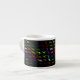 Färgglad espressokopp med ett regnbågsdinosaurie-mönster. Förhistorisk psykedelisk konst med t rex, triceratops, pterodaktyl, gallimimus och diplodocus.