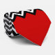 Den ovanliga röda vit- och svartsparren mönstrar slipsen.