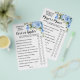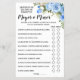 Blåa blommor Ove eller Under Möhippa ingår engelska och spanska versionsspel (front and back). Ändra formuleringen till engelska och spanska versioner. Om du vill ha ytterligare anpassning (ändringsfråga och annan ordalydelse, font färg, font stil ) klickar du på personalize, rulla down (anpassa) och klickar på länken "click to custom more" (klicka för att anpassa ytterligare). HUR DU SPELAR: Gästerna anger om de tänkor numret i varje påstående är över eller under