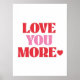 Add a sweet and modern touch to your space with this “Love You More” poster, featuring bold retro-inspired typography in romantic red and soft pink tones. Minimal yet expressive, this design makes a beautiful statement piece for bedrooms, living rooms, dorms, or cozy corners.