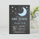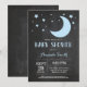 Över inbjudan för månepojkebaby shower. Blått- och svart tavlabakgrund. Behaga klickar "skräddarsy den" knäppas och använder vårt designverktyg för att ändra denna mall för mer ytterligare customization.