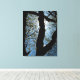 En silhuett träd grenar på eftermiddagen sol, med nya löv från Vår.