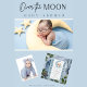 Över den blå vattenfärgsbabysknappen i Måne Inbjudningar
