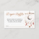 Vi presenterar vårt kort över den kelesterade babyskåran i Måne. Det här vackert designade kortet är perfekten som tillägg till din flickdusch, vilket gör att du får en känsloladdad charm. Med en drömmande måne och stjärnor som är rörliga i skuggor av guld och rosa kommer det säkert att göra dina gäster blinkade med glädje. Vår boho-inspirerade design som inspirerats av det klassiska "Twinkle, Twinkle, Little Star"-babyduschtemat, anger tonen för ett magiskt och minnesvärt firande. De skarpa accenterna och nyheterna i guld gör att rosan av denna djurhållare blir en underbar keepy för dina gäster. Ta emot en känsloladdad babydusch som är helt borta från världen med vårt över Måne Celestial Baby Shower Diaper Raffle-skåp. Det tillför inte bara en del berömvärt elegans, utan uppmuntrar också gästerna att delta i en roligt och spännande tidningsraffel. Det är perfekten att göra din händelse verkligt speciell och minnesvärd. Beställ din i dag och låt ditt barn duscha lika ljust som stjärnorna på natten himlar!
