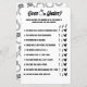 Gör din möhippa eller bachelorette-fest oförglömlig med det här Över- eller Under-bröllop-gissningsspelet! Gästerna kommer att ha en blast som gissar om antalet i varje påstående är över eller under det verkliga beloppet. Det här utskrivbara spelet är ett tillägg till dina bröllop-festligheter med en modern svartvit design med illustrationer från chic ring. 🎉: Interactive & Roligt: En underbar isbrytare för gäster av alla åldrar och Elegant och Snyggt: Klassisk svartvit kostym av bröllop stil högkvalitativ utskrift: Professionellt Kärlek för ett polerat utseende anpassningsbara: Gör den till egen med designad text eller detaljerad information om Samordningsposter tillgängliga: Kolla vår samling efter matchande anpassningsbar-spel, inbjudningar. Och dekorera! 💍 Perfekt Till: Möhippor Möhippors Bröllop repetiterar Förlovningsfester som enkelt anpassar detta Över- eller Under-spel för att matcha ditt evenemang! Redigera bara texten, lägg till ett speciellt meddelande eller ändra informationen så att den blir unik. Klicka på "Anpassa" för att komma igång!