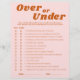 "Över- eller Under Last Disco Möhippa Game" lägger till ett tankstreck med roligt till din möhippa eller bachelorette-fest. Som ett diskotematiskt spel är det perfekten underhållning för en boho disco eller tropiskt inspirerad firande. Med sina pulserande nyanser av rött, rosa och orange fångar det här spelet kärnan av reflexvibes, skapar det som ett perfekt val för en sista disco-möhippa eller en reflexmässig händelse. Vare sig du gissar över eller under är det säkert att du kan utlösa skratt och livlig konkurrens mellan dina gäster och skapa oförglömliga minnen fram till den stora dagen.