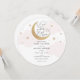 Baby Shower-inbjudan med vattenfärgsmoln och rosor med guld glittery måne och roligt-skript "Vi är över måne!" Anpassa med informationen eller klicka på "klicka för att anpassa ytterligare" för att justera teckensnittstypen, storlek, färg.