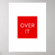 A powerful and direct statement piece. The design features the phrase "OVER IT" in a stark white, clean sans-serif font, emphasizing the feeling of being finished or moving past a situation. The bright red square and black background create a sense of urgency and clarity. Ideal for those who love bold, straightforward designs that communicate a mood.