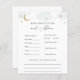 Kort för babyduschråd och förutsägelser med vattenfärgade blå moln och guld-stjärnor. Ett roligt sätt att interagera med gäster under barnduschen. Matchar Över över Måne-samlingen i Adore Papper Co Zazzle Shop.
