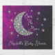 Över babyduschen i måne med silver måne och stjärnor mot en svart och rosa lila himmel