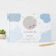 "Vi är över måne", guestbook med anpassningsbar för babydusch med söta blå moln och måne och stjärnor guld/glitter.