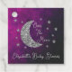 Över babyduschen i måne med silver måne och stjärnor mot en svart och rosa lila himmel